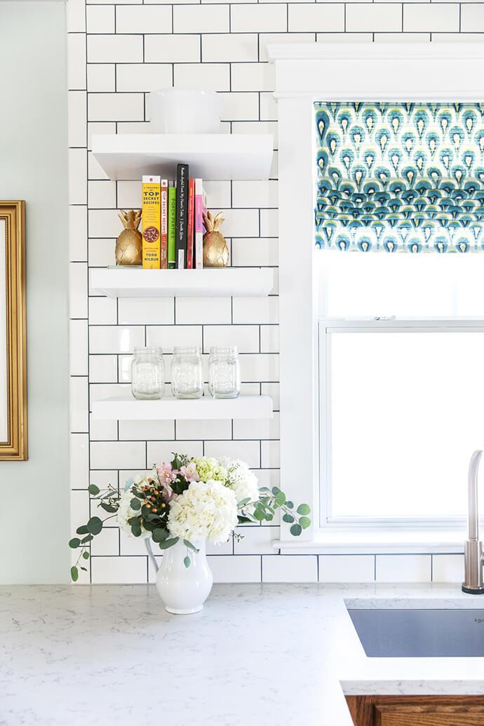 What is your most favorite part about your new kitchen? My favorite element is the counter to ceiling subway tile with open shelving but the overall best part is how bright and happy it feels now.